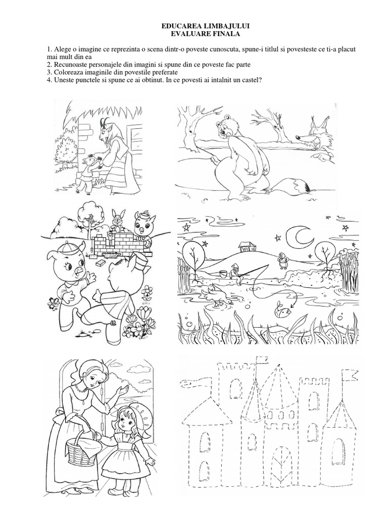 Poveştile pentru copii din colecţia acestui colţ de internet au fost selectate cu dragoste şi atenţie anume pentru a răspunde exigenţelor fiecărui copil, părinte aici veţi citi povestea lui harap alb sau alte poveşti frumoase şi la fel de interesante. Observă ilustraţiile, apoi răspunde la întrebările de mai jos:care vor fi personajele poveștii? Pe verso sunt ilustrate sugestii pentru a picta planșele, sau puteți lăsa imaginația și creativitatea să îi ghideze. Ce însuşiri crezi că vor avea acestea?ce prevezi că se … va întâmpla? Pe baza lor, provocati copilul sa povesteasca, sa joace jocuri de rol sau sa discute despre personaje.