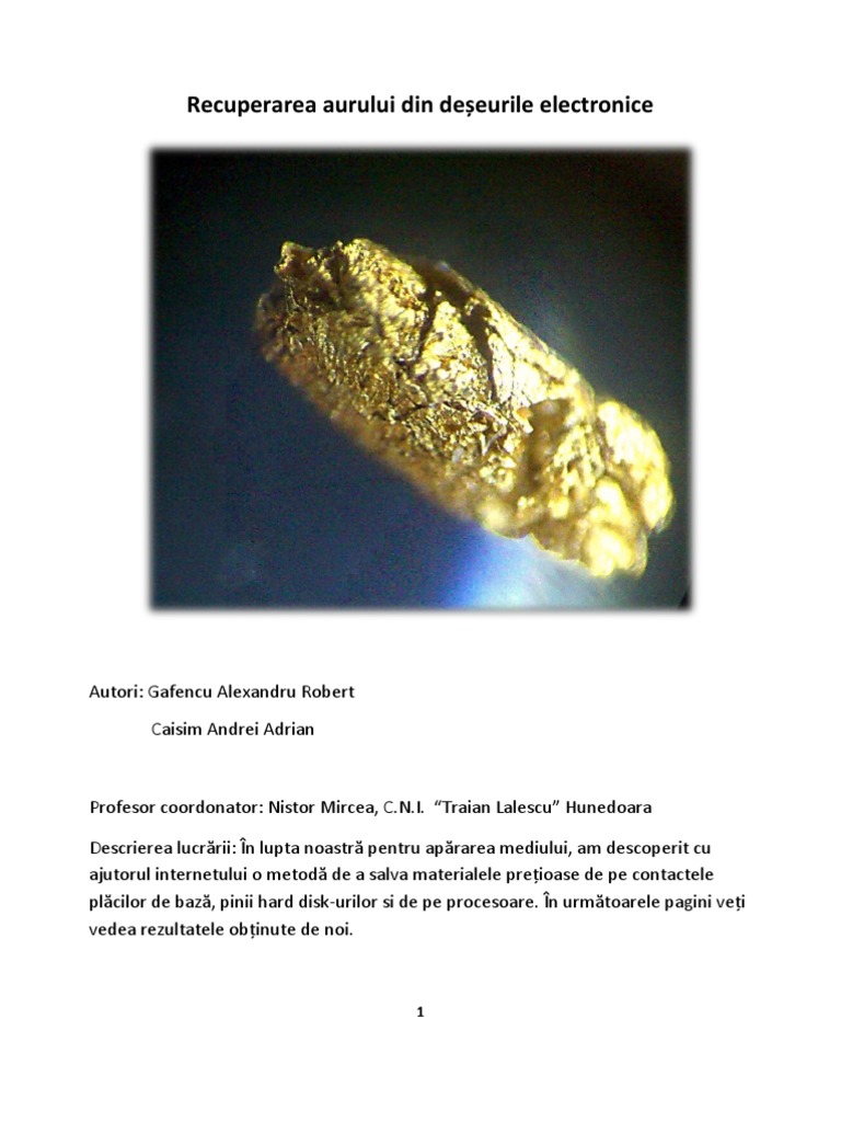 Recuperarea aurului de pe componente electronice 2. Hotelul helios spa**** din nisipurile de aur se afla la 200. Monedele de aur dacice recuperate din marea britanie, expuse la muzeul national de istorie.