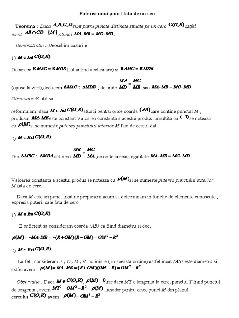 Puterea Punctului Fata De Cerc