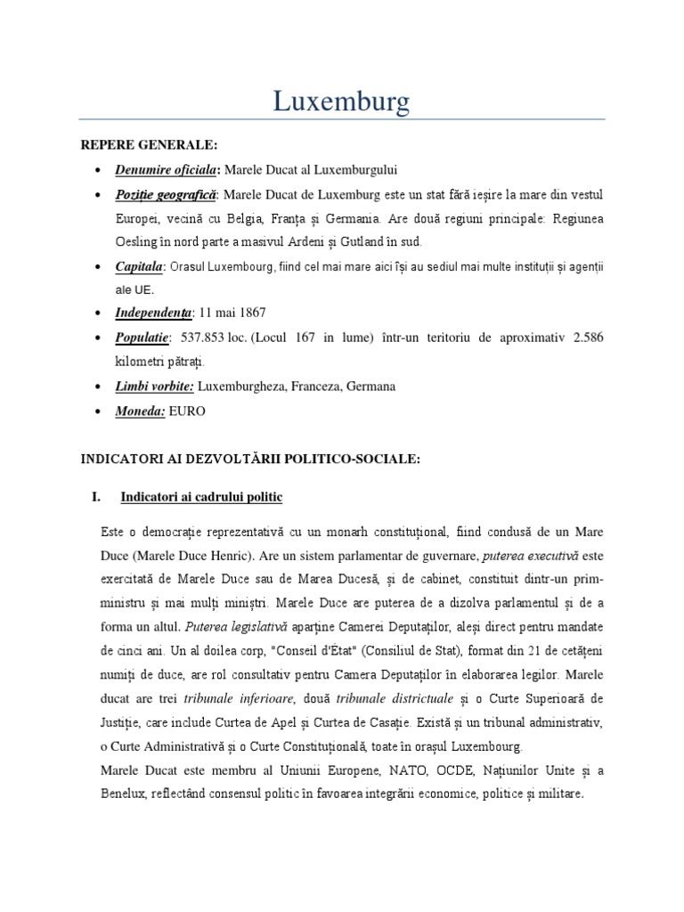 Luxemburg a fost invadat si ocupat de imperiul german în timpul primului război mondial si de către. Conform constitutiei luxemburgheze, puterea executiva o are atat marele ducele cat si cabinetul.